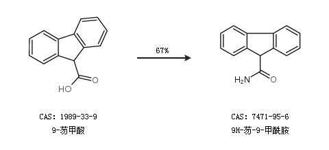 1.通過9-芴甲酸合成9H-芴-9-甲酰胺,收率約67%;
