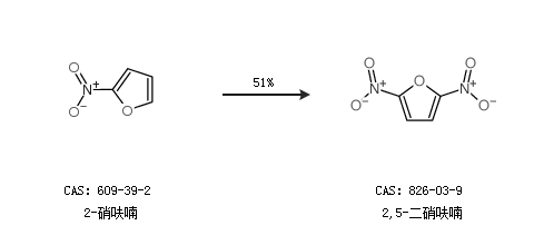 1.通過2-硝呋喃合成2,5-二硝呋喃,收率約51%;