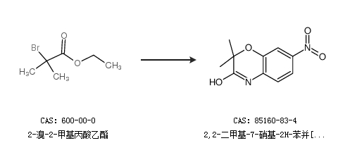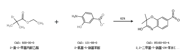 2.通過2-溴-2-甲基丙酸乙酯和2-氨基-5-硝基苯酚合成2,2-二甲基-7-硝基-2H-苯并[b][1,4]噁嗪-3(4h)-酮,收率約62%;