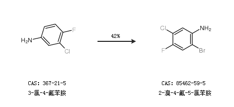 1.通過3-氯-4-氟苯胺合成2-溴-4-氟-5-氯苯胺,收率約42%;