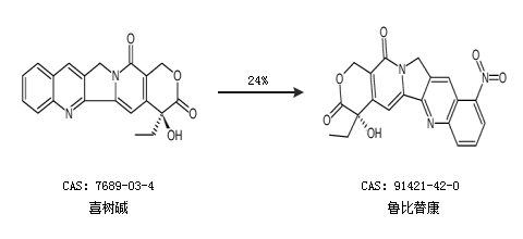 2.通過喜樹堿合成魯比替康,收率約24%;