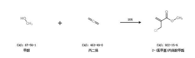 2.通過甲醇和丙二烯合成2-(氯甲基)丙烯酸甲酯,收率約16%;