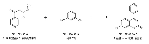 2.通過3-(4-吡啶基)-3-氧代丙酸甲酯和間苯二酚合成7-羥基-4-(4-吡啶)香豆素