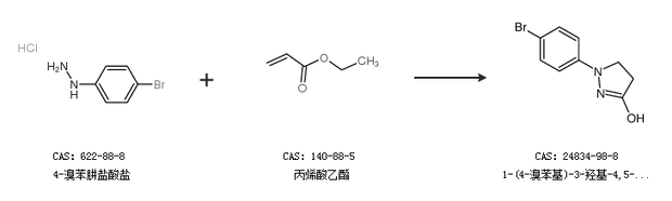 1.通過4-溴苯肼鹽酸鹽和丙烯酸乙酯合成1-(4-溴苯基)-3-羥基-4,5-二氫-1H-吡唑