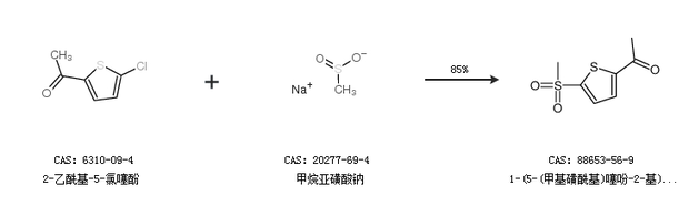 2.通過2-乙酰基-5-氯噻酚和甲烷亞磺酸鈉合成1-(5-(甲基磺?;?噻吩-2-基)乙酮,收率約85%;