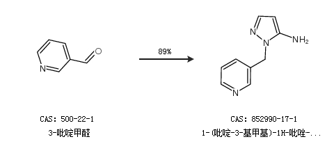 1.通過3-吡啶甲醛合成1-(吡啶-3-基甲基)-1H-吡唑-5-胺,收率約89%;