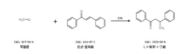 1.通過甲基鋰和反式-查耳酮合成1,3-聯苯-1-丁酮,收率約23%;