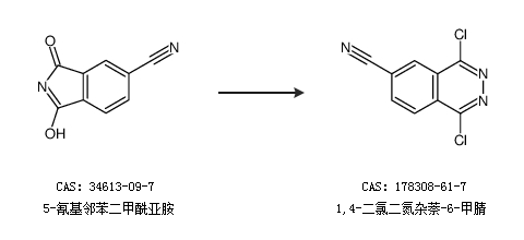 2.通過5-氰基鄰苯二甲酰亞胺合成1,4-二氯二氮雜萘-6-甲腈