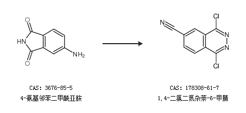 1.通過4-氨基鄰苯二甲酰亞胺合成1,4-二氯二氮雜萘-6-甲腈