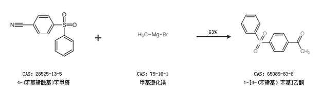 1.通過4-(苯基磺酰基)苯甲腈和甲基溴化鎂合成1-[4-(苯磺基)苯基]乙酮,收率約63%;
