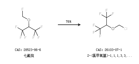 1.通過七氟烷合成2-(氯甲氧基)-1,1,1,3,3,3-六氟丙烷,收率約76%;
