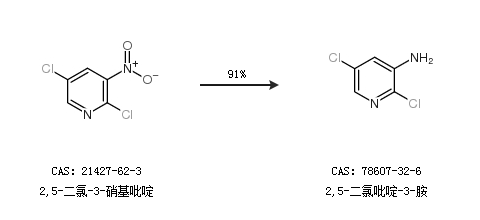 1.通過2,5-二氯-3-硝基吡啶合成2,5-二氯吡啶-3-胺,收率約91%;