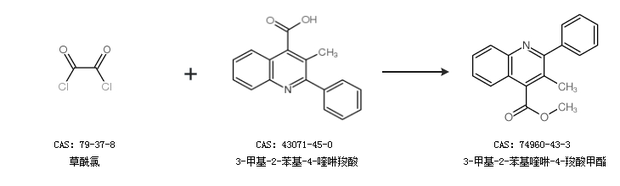 2.通過草酰氯和3-甲基-2-苯基-4-喹啉羧酸合成3-甲基-2-苯基喹啉-4-羧酸甲酯