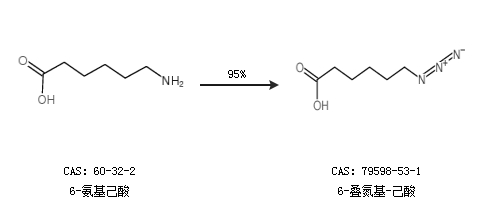 2.通過6-氨基己酸合成6-疊氮基-己酸,收率約95%;