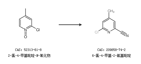 2.通過(guò)2-氯-4-甲基吡啶-N-氧化物合成6-氯-4-甲基-2-氰基吡啶