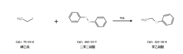 2.通過碘乙烷和二苯二硫醚合成苯乙硫醚,收率約75%;