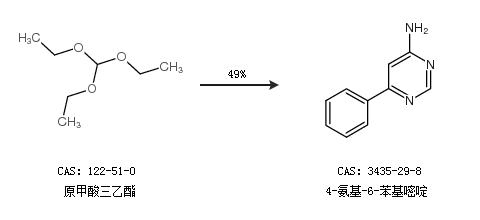 2.通過原甲酸三乙酯合成4-氨基-6-苯基嘧啶,收率約49%;
